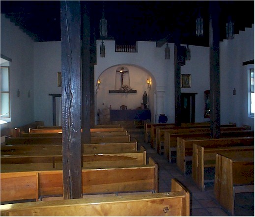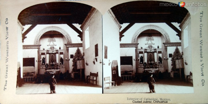 Sus paredes son de adobe. Las vigas del techo y los pilares son troncos de palma traídos del sur y tallados a mano Se han perdido seis vigas, 4 de ellas el 10 mayo de 1911 y otras dos en 1913 cuando las tropas de Francisco Villa tomaron la ciudad. En su interior hay varias estatuas de madera como la de «La Inmaculada Concepción» y «La Dolorosa» que son más antiguas que la misión y se cree que fueron talladas en Europa.